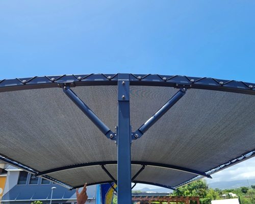 Contrairement au voiles tendue, elles ne nécessitent pas de gros travaux de fondation et peuvent être installées n’importe où sans prendre appui sur un mur ou une autre structure existante, ce qui permet une plus grande flexibilité d’emplacement.
